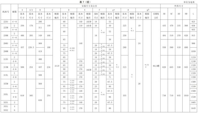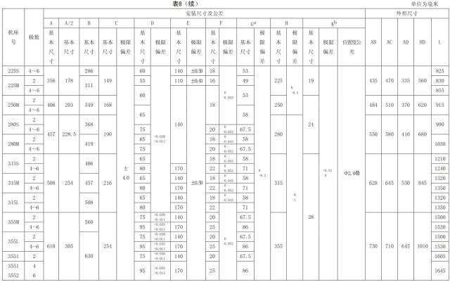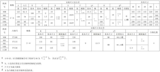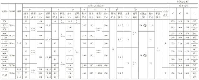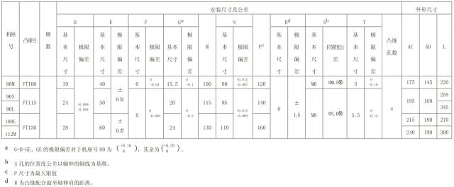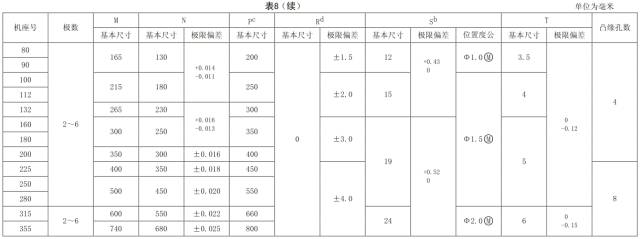 表 8 机座带底脚、端盖上有凸缘(带通孔)的电动机数据