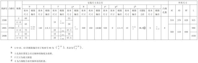 表10 机座带底脚、端盖上有凸缘(带螺孔)