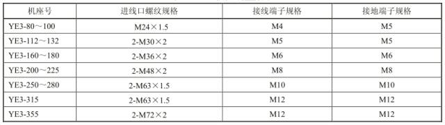 表 12 电动机接线盒数据