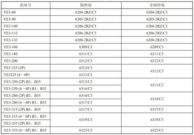 机座号 80~355 轴承型号(见表 13)。