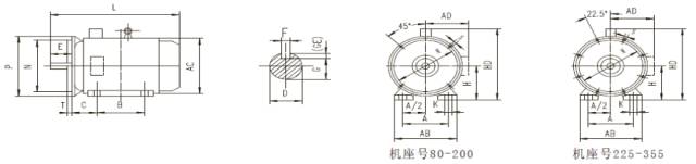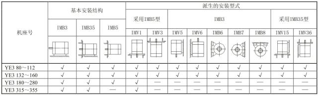 本系列电动机有三种基本安装结构型式及九种派生安装结构型式(见表3)。
