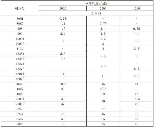 电动机产品系列型谱(见表 2)。